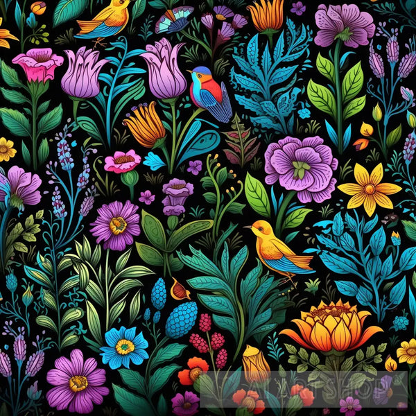 Elegant and beautiful nature pattern with vivid flowers,leaves and birds to improve your mood.
