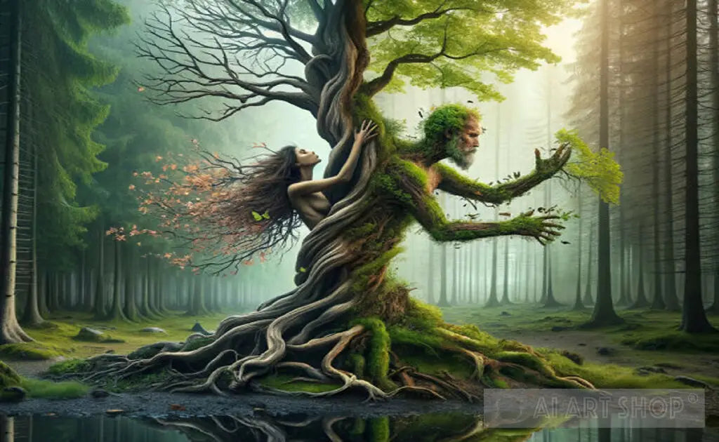 صوره اصليه معاصره للذكاء الاصطناعي للطبيعه الخيالية وتحول الشجر الي بشر