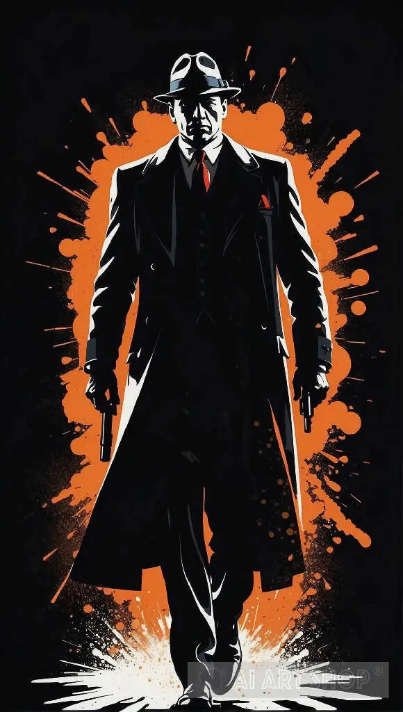 2D illustration of In mafia mens strong outlines, bold traces, high contrast, (professional vector), best quality, flat colors, flat lights, low levels, (powder explosion).