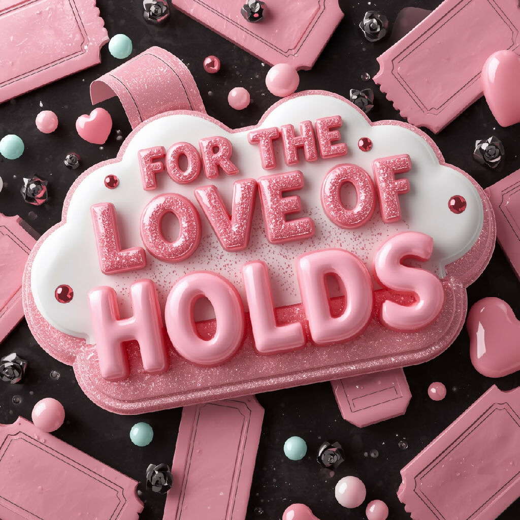 3D realistic pull tab shaped sign that says “FOR THE LOVE OF HOLDS” in a 3D realistic