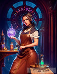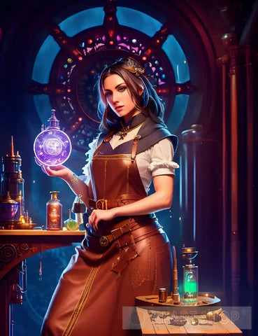 A beautiful female alchemist, creating magic potions