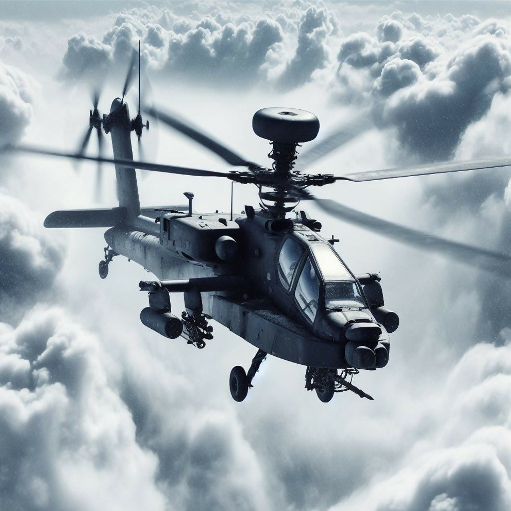 A Black Hawk Fighter above clouds