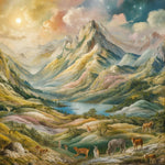 A captivating mountainscape painting evoking a sense of awe and wonder