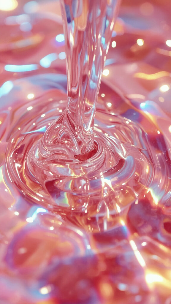 A close-up of glossy, vibrant slime being slowly squeezed and stretched, shimmering light reflections shifting across its surface, creating a calming and satisfying tactile atmosphere, the camera is stationary.