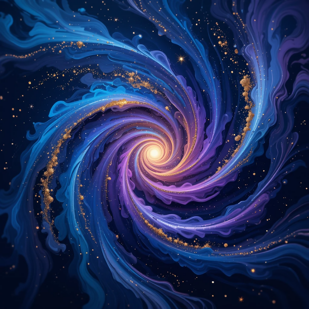 This cosmic-inspired design features swirling blues, purples, and metallic gold, creating a mesmerizing galaxy-like composition. The fluid, organic shapes and vibrant colors evoke the vastness and mystery of the universe, while the metallic gold accents add a touch of elegance and brilliance. Perfect for fans of space and abstract art, this piece captures the beauty and wonder of the cosmos, making it a stunning addition to any space. The high-resolution design is ideal for digital art prints, wall decor, or even fashion inspiration.