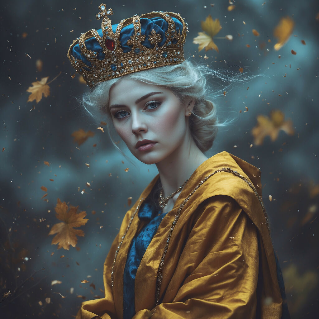 A Crown Too Heavy: This evocative artwork captures the poignant journey of a young queen, crowned too soon, navigating the labyrinth of power and responsibility. Her youthful innocence fades as the weight of governance demands her sacrifice, leaving her in a silent battle between self-doubt and resilience. Her gaze is heavy with questions—why was she chosen, and are her decisions enough for a skeptical nation? Yet, amidst the whispers of uncertainty, her unyielding spirit clings to the fragile hope of a brighter future, a testament to strength forged in the crucible of duty.