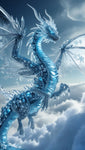 A majestic ice dragon crafted from intricately arranged crystals and delicate snowflakes, with a slender serpentine body, translucent wings outstretched, and an ethereal aura, soaring through a frosty sky with wispy cirrus clouds tinted in shades of pale blue and silver, its gaze piercing and enigmatic, as if guarding ancient secrets, with subtle hints of frosty mist surrounding its regal presence, evoking a sense of mystique and frozen elegance, in stunning 4K resolution, with crisp details and vibrant colors that bring the winter wonderland to life.