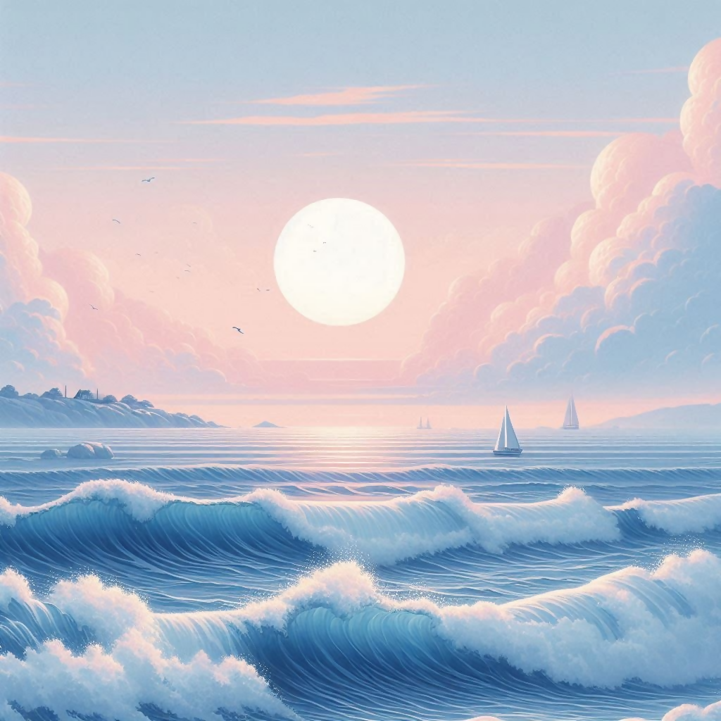 This calming seascape captures the serene beauty of crashing waves, a distant lighthouse, and a pastel sunset. The soft blues, pinks, and whites create a harmonious and soothing color palette, evoking a sense of peace and tranquility. The gentle glow of the sunset reflects on the water, while the lighthouse stands as a beacon of hope and guidance. Perfect for fans of coastal and landscape art, this piece is a serene and elegant addition to any space, bringing the calming essence of the ocean indoors.