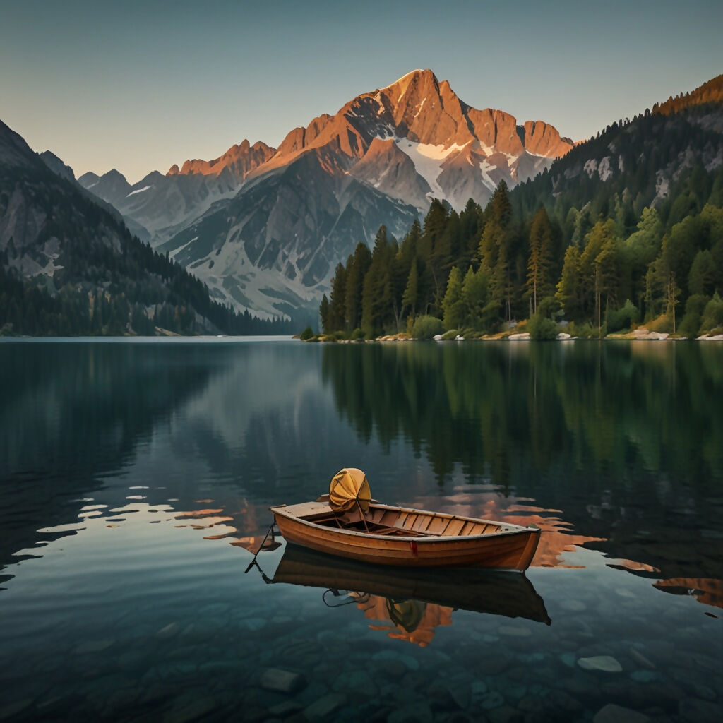 A serene and captivating alpine landscape, captured in a wide-angle shot during sunrise 5