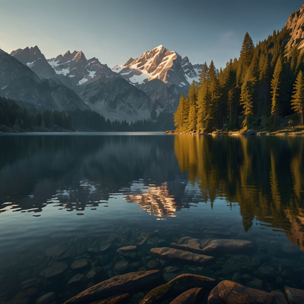 A serene and captivating alpine landscape, captured in a wide-angle shot during sunrise 7