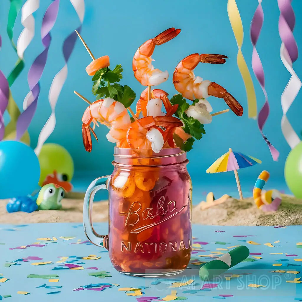 Props: Include a pair of sunglasses perched on the rim of the jar, as if someone is ready to dive into a "shrimptastic" adventure.