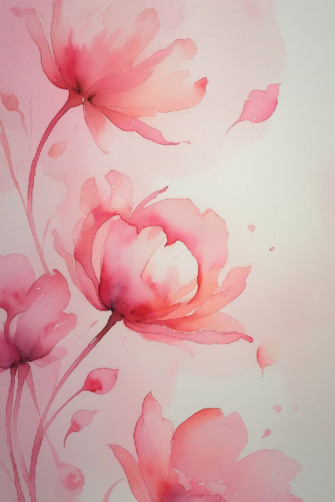 A soft, ombre gradient of pink hues, reminiscent of delicate, pastel petals, serves as the backdrop for an exquisite watercolor graphic, evoking a sense of whimsy and romance. The gentle, blended washes of color evoke a dreamy, ethereal quality, as if the entire scene is suspended in a soft focus. The delicate, hand-painted texture of the watercolor adds a tactile quality to the image, inviting the viewer to reach out and touch. The pink gradient deepens to a blush-like tone at the top, gradually lightening to a pale, cotton candy hue towards the bottom, imbuing the piece with a sense of depth and dimensionality.