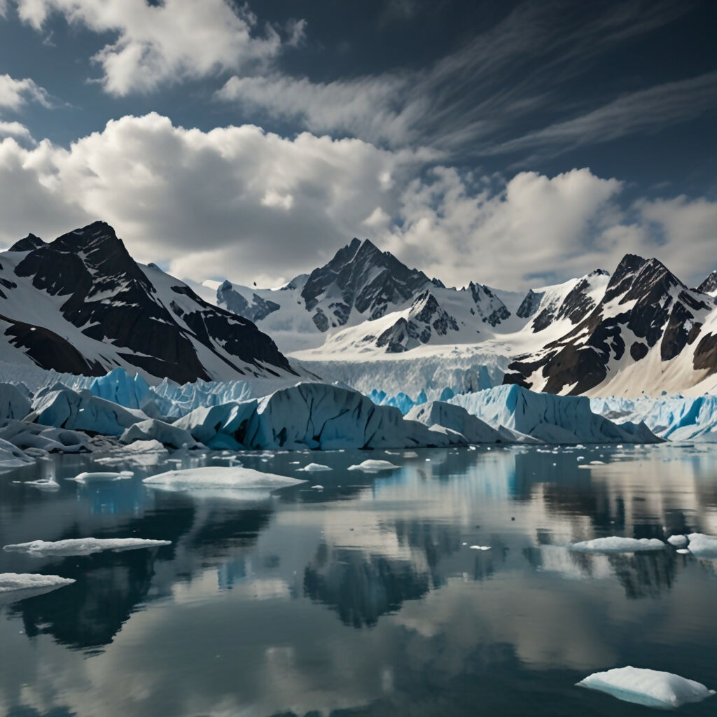 A stunning glacier with blue ice formations, towering peaks, and a bright, sunny sky 3