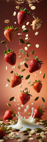 A whimsical still life featuring an assortment of healthy ingredients