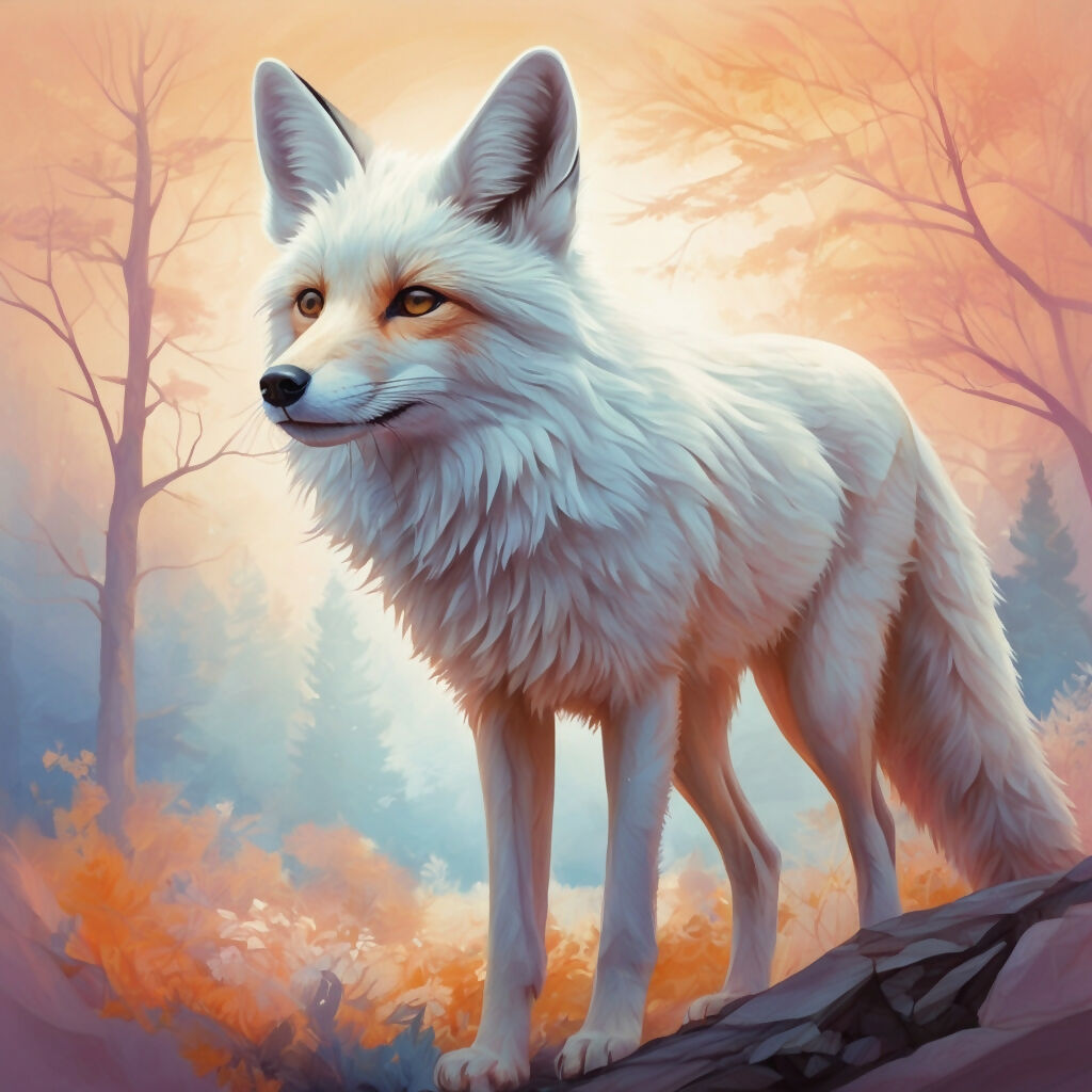Geometric polygonal psychedelic art, digital illustration of a brave fox, cool, vivid colors, vector; White background, bright 30 environment: high resolution