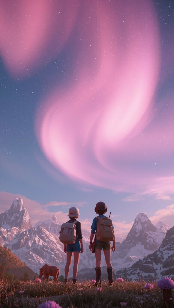 “AAA cinematic 3D high detail: The two adventurers pause to gaze at the sky