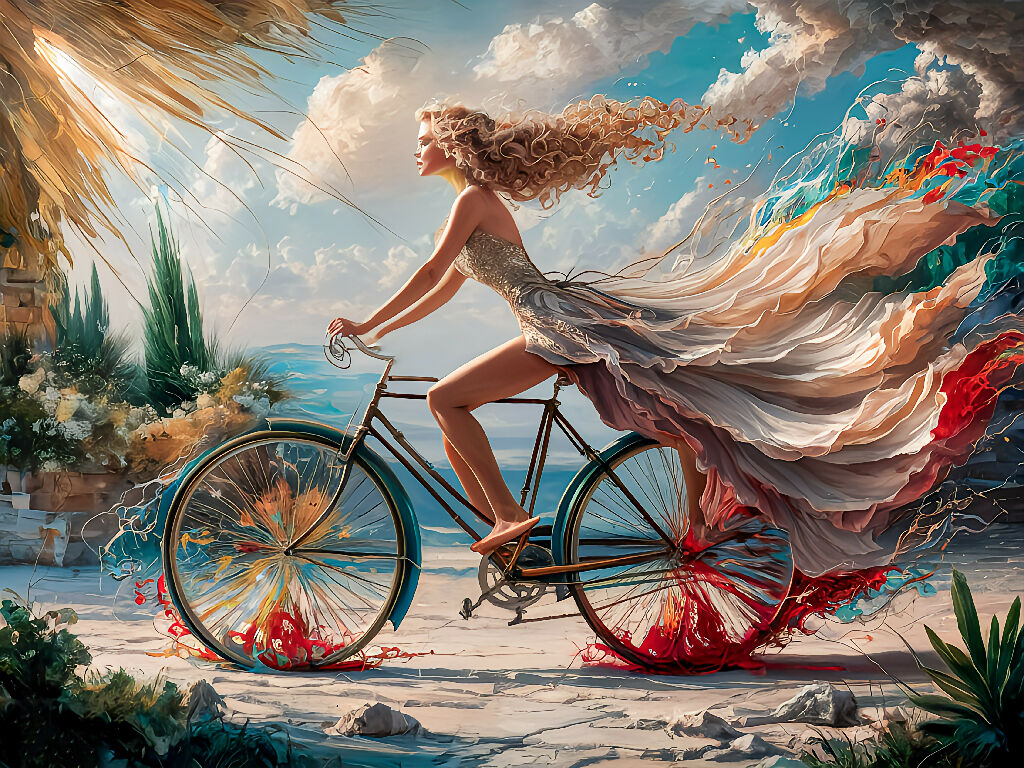 Abstract Art of Gorgeous Girl Ride a Bike #1