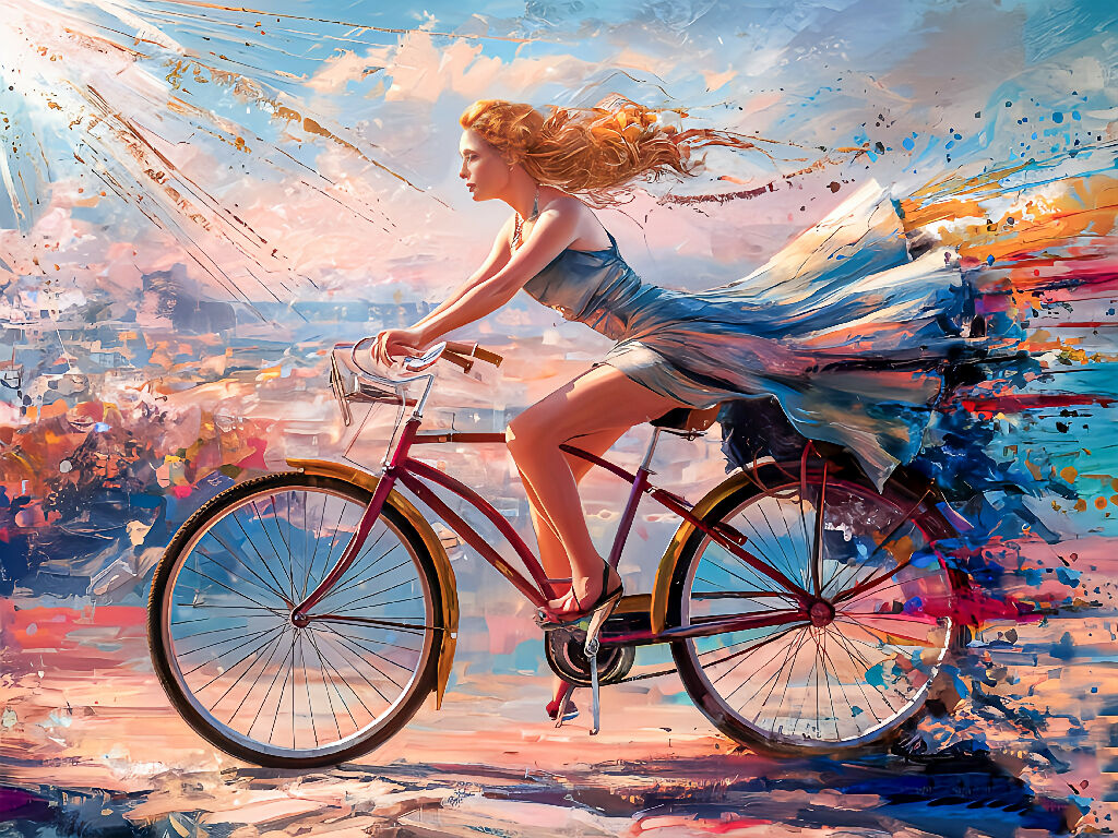 Abstract Art of Gorgeous Girl Ride a Bike #4