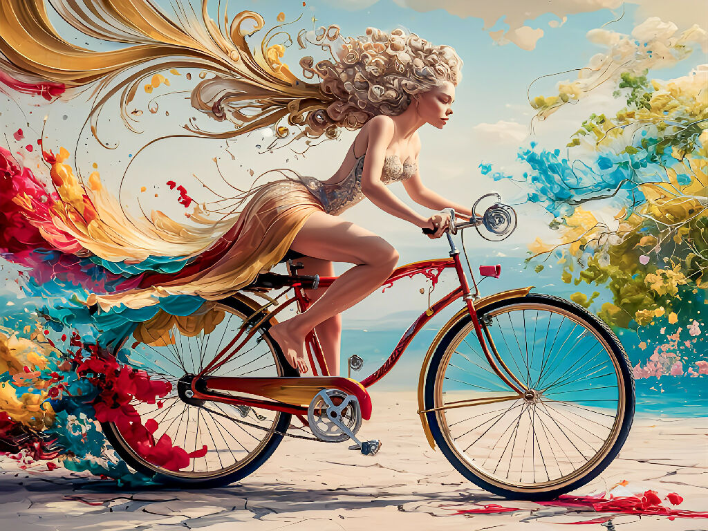 Abstract Art of Gorgeous Girl Ride a Bike #5
