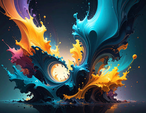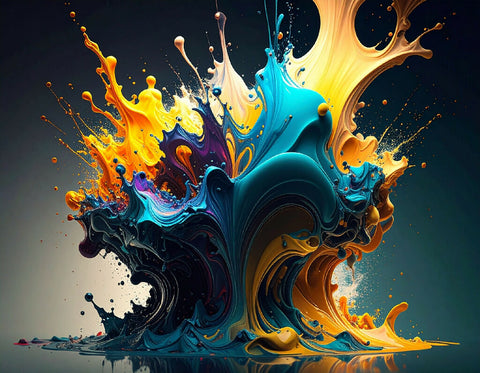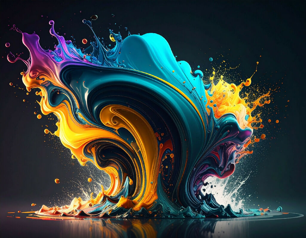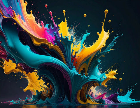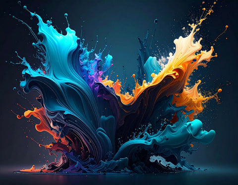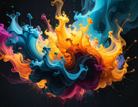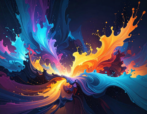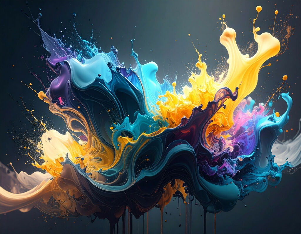 Abstract art poster, colorful fluid shapes, vibrant paint splashes, modern digital art print, bold and dynamic composition, high contrast, perfect for wall decoration, contemporary aesthetic