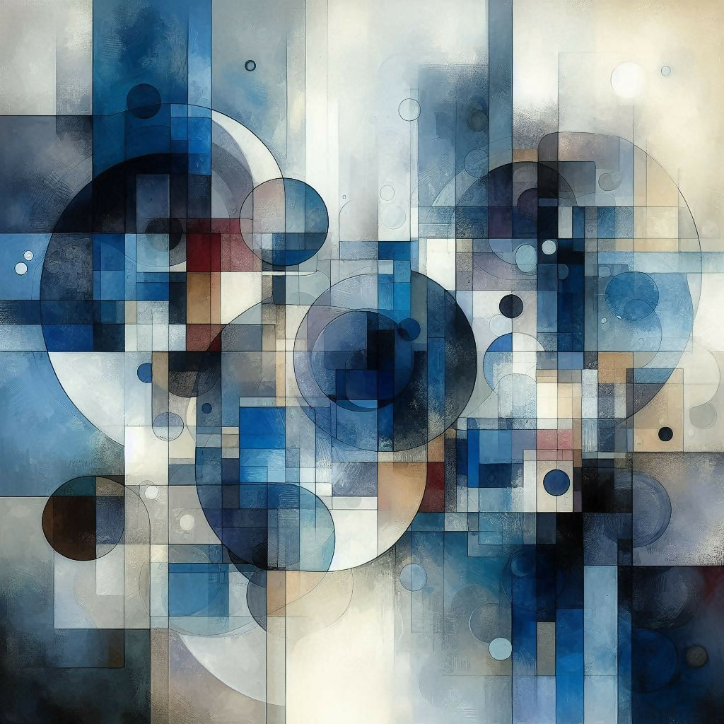 A multi-layered, capitivating abstract composition subtly combining both warm and cool colors.