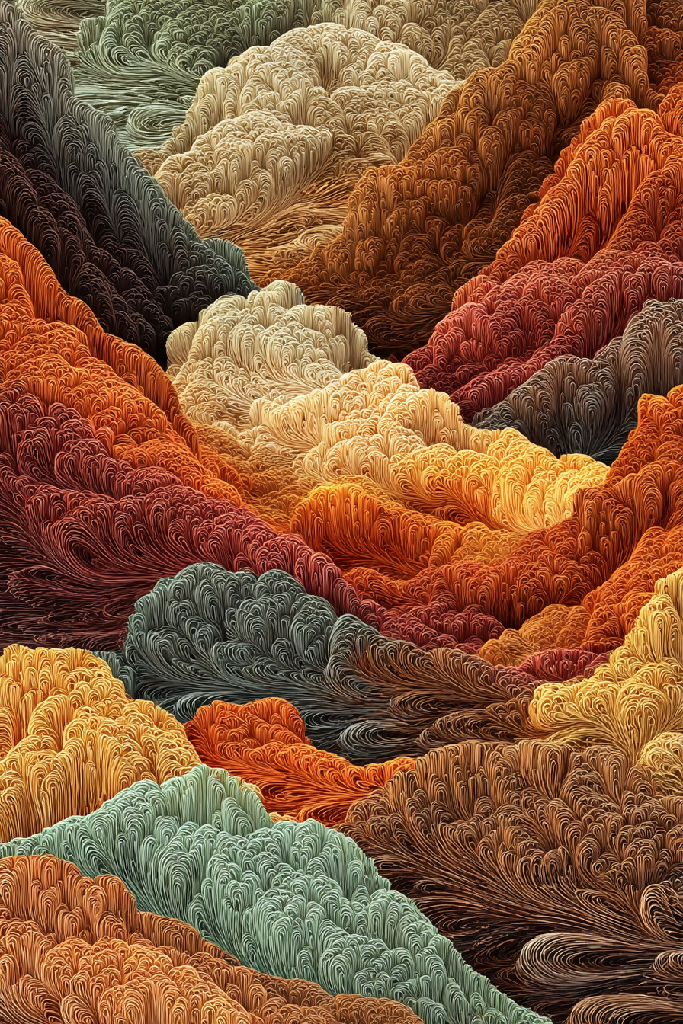 Tags: abstract, topographic, geological, digital art, organic texture, swirling patterns, earth tones, terrain, concentric layers, fiber-like