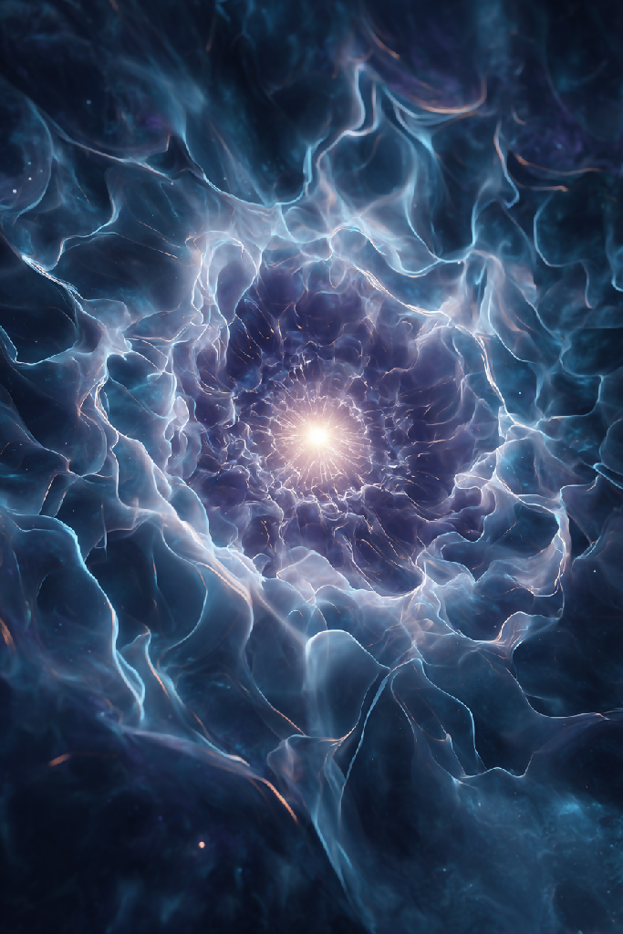 Style: abstract cosmic, energetic, swirling composition, glowing core, ethereal textures, vibrant palette, sci-fi inspired, metaphysical, dynamic depth, light-driven