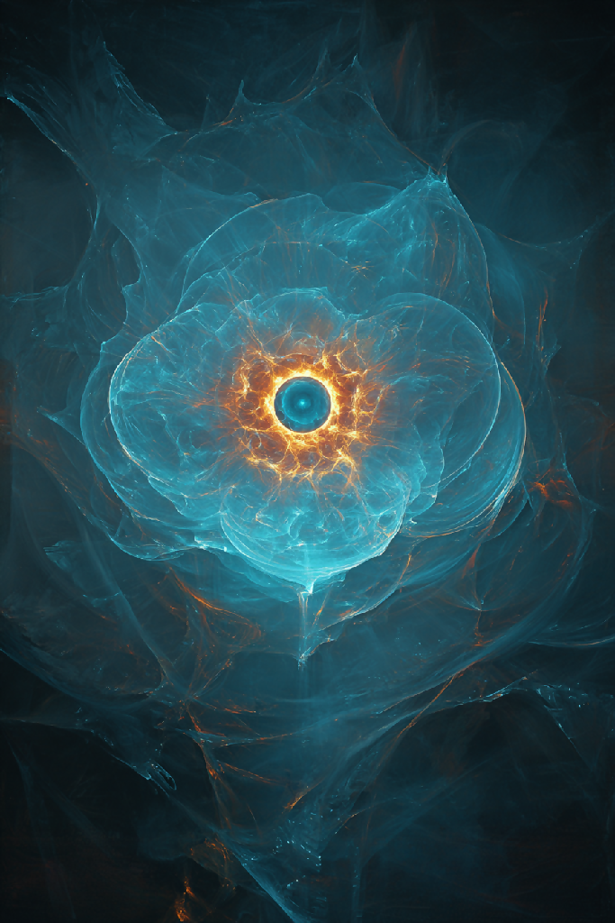 Style: abstract cosmic, energetic, swirling composition, glowing core, ethereal textures, vibrant palette, sci-fi inspired, metaphysical, dynamic depth, light-driven