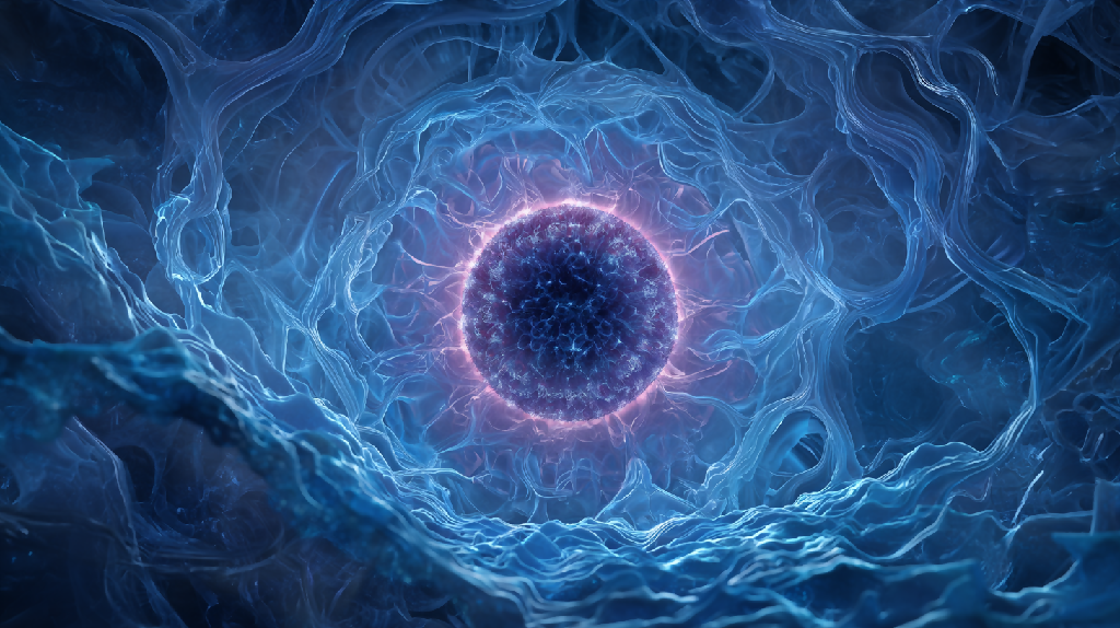 Style: abstract cosmic, energetic, swirling composition, glowing core, ethereal textures, vibrant palette, sci-fi inspired, metaphysical, dynamic depth, light-driven