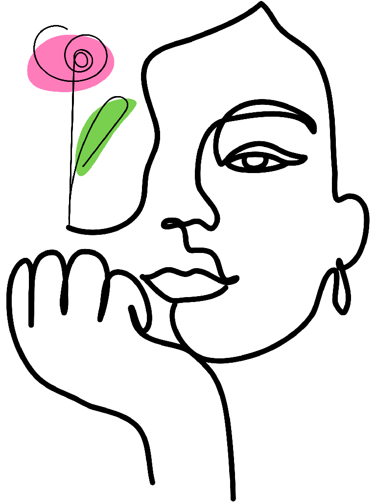 Discover the elegance of simplicity with this captivating one-line drawing. Featuring an abstract female portrait rendered in a fluid, continuous line art style, this design embodies modern minimalist aesthetics. The subtle floral accent (pink flower, green leaf) adds a unique touch to the clean outline sketch.