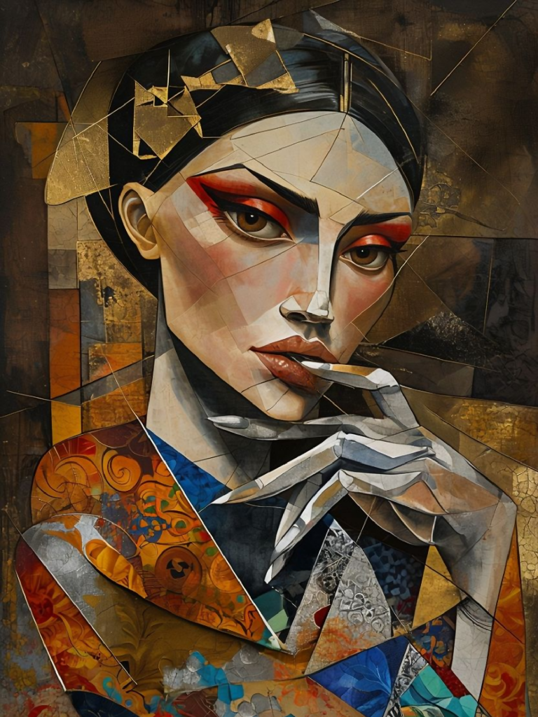 Abstract Geisha Portrait in Cubist Style