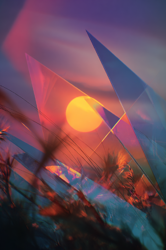 Tags: abstract, digital art, surreal, light source, glowing, geometric, crystalline, translucent, dreamlike, vibrant colors, synthetic nature, reflection