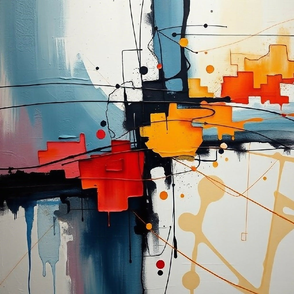 Abstract painting is an intriguing art form that breaks away from representational representation and instead uses colors, shapes, and textures to express emotions and concepts. A large, vibrant painting that plays with bold, contrasting colors. The colors are arranged in dynamic brushstrokes or flowing shapes that move across the canvas and convey a certain energy and movement.