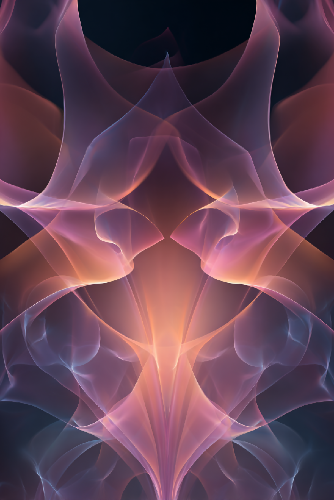 Tags: abstract, digital art, symmetry, glowing shapes, energy flow, vibrant gradients, futuristic, 3D render, geometric patterns, ethereal design