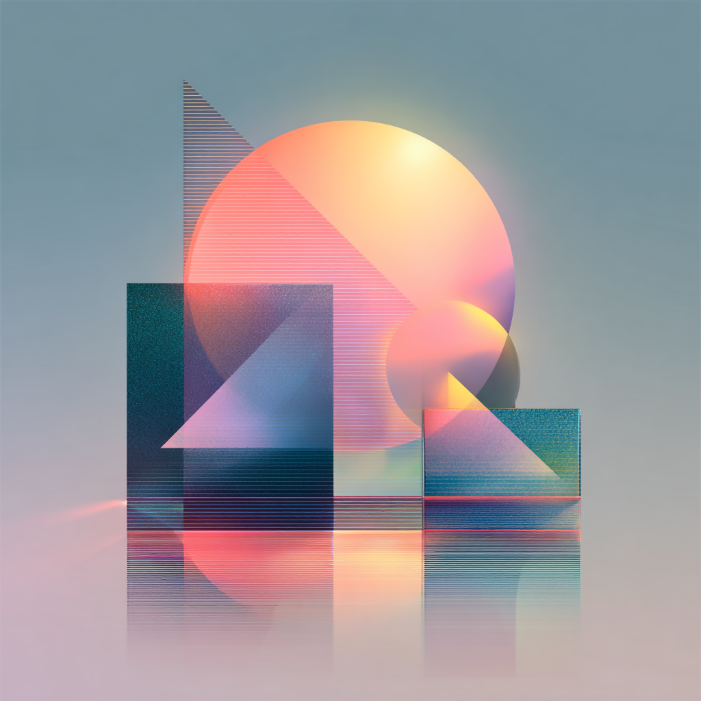 Tags: abstract, digital art, surreal geometry, translucent shapes, glowing spheres, visual perception, modern aesthetics, color gradients, reflective surfaces, 3D composition, minimalism, futuristic design, geometric abstraction, digital landscape, conceptual art