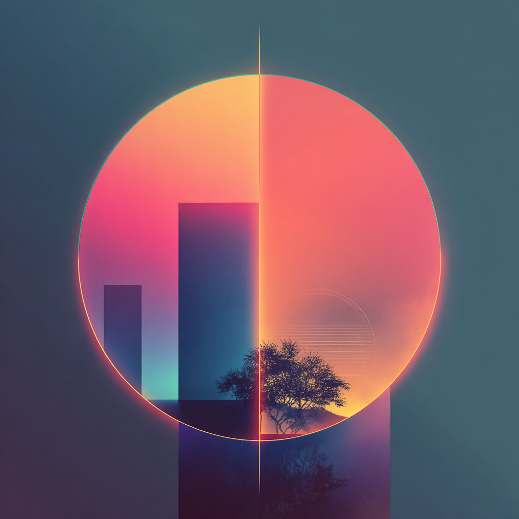 Abstract Refractions is a digital art series exploring the fusion of geometry, light, and surreal landscapes. Each composition features translucent shapes—spheres, rectangles, angular forms—interacting with stylized natural elements like mountains and celestial bodies. Through gradients, reflections, and layered depth, the series evokes a futuristic calm where abstraction becomes a language of perception and emotion.