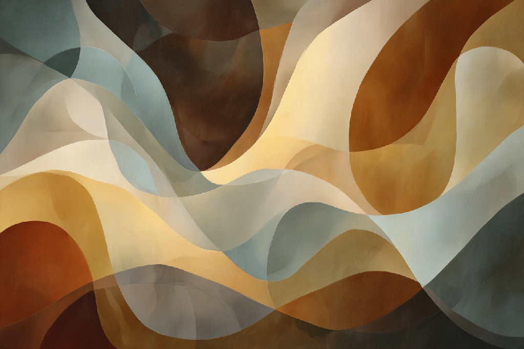 Tags: abstract, organic forms, visual rhythm, contemporary art, texture, motion in stillness, earth tones, digital sculpture, minimalism, layered design, translucent shapes, poetic abstraction