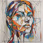 In a sophisticated and innovative style at the same time. Colors and lines blend subtly, creating a unique visual effect. Advanced expressive drawing enables the artistic representation of emotions, where colors flow and shapes play to convey the complexity of human feelings and experiences. Minute details can be a window into the emotional and philosophical depth of an artist. The panel relies on advanced technologies to achieve innovative effects, such as color overlapping and multiple layers, which uniquely enhance the viewing experience. This painting can make you wonder and contemplate its multiple meanings and complex artistic details.