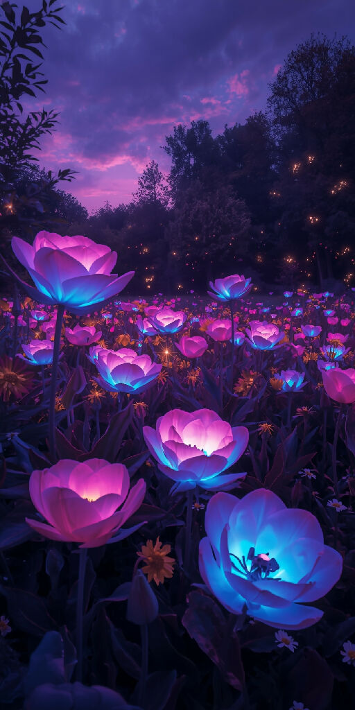 🌸 Aesthetic Flower Garden (Version 2) “An endless glowing flower garden under a violet twilight sky