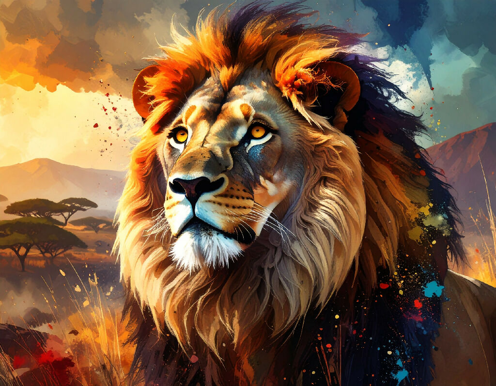Behold the King of the Savanna in this stunning AI-generated painting! This powerful portrait captures the raw beauty and untamed spirit of an African lion, with piercing golden eyes, a flowing mane, and the golden hues of the wilderness. Perfect for nature lovers, wildlife enthusiasts, or anyone who appreciates bold, regal art.