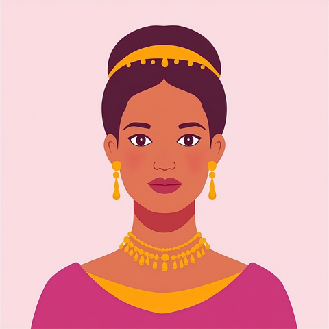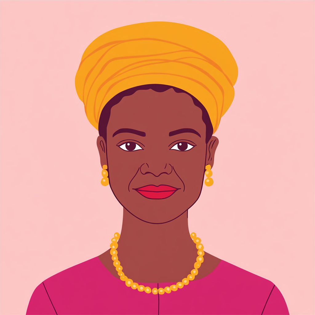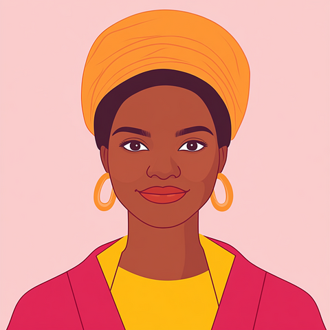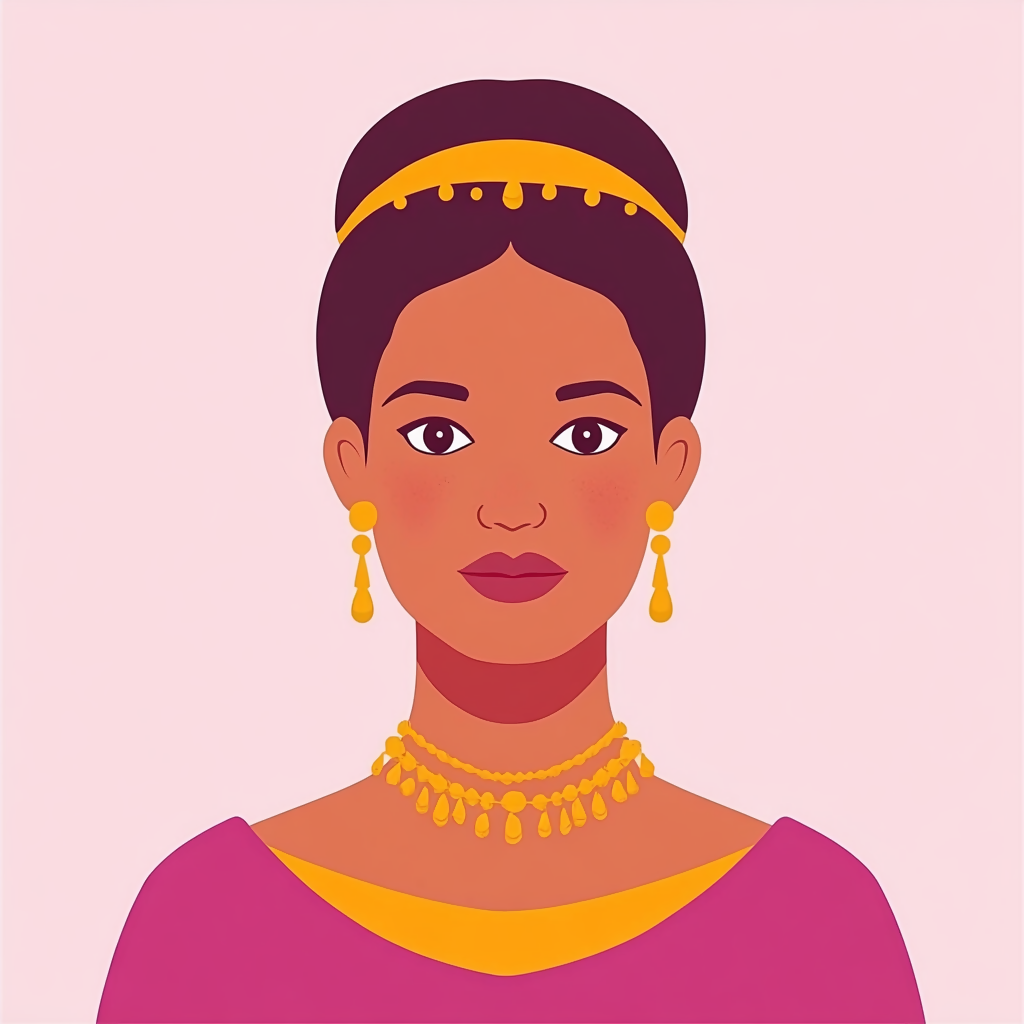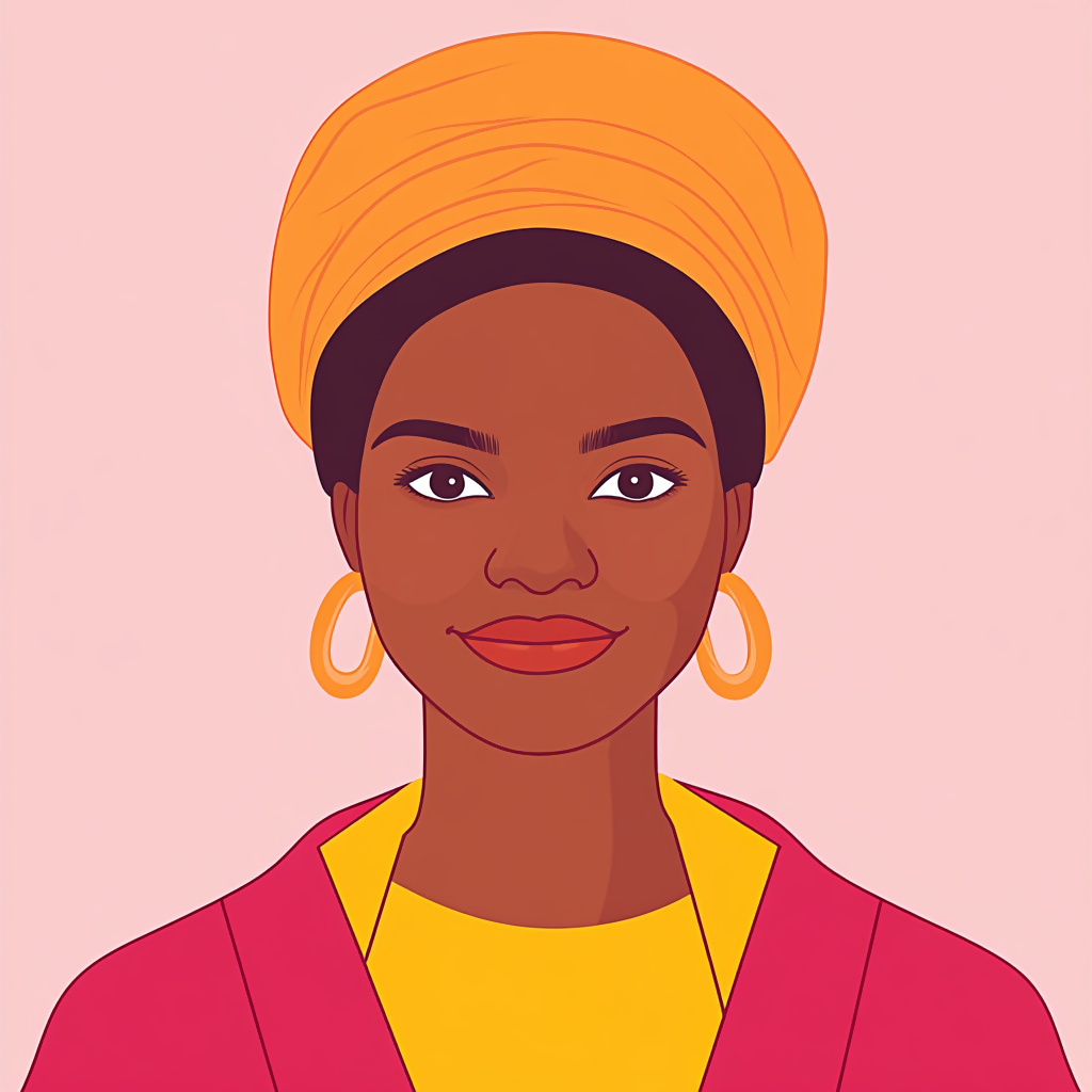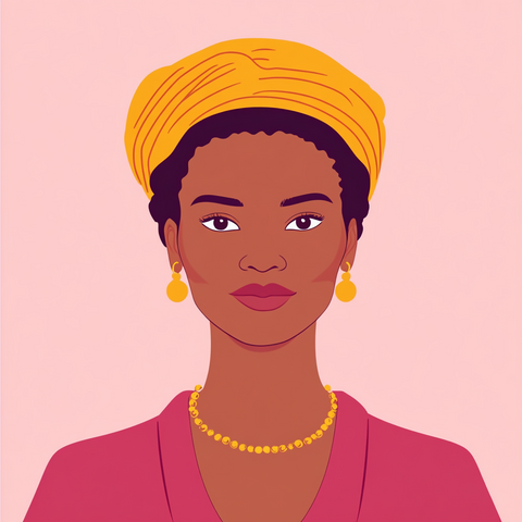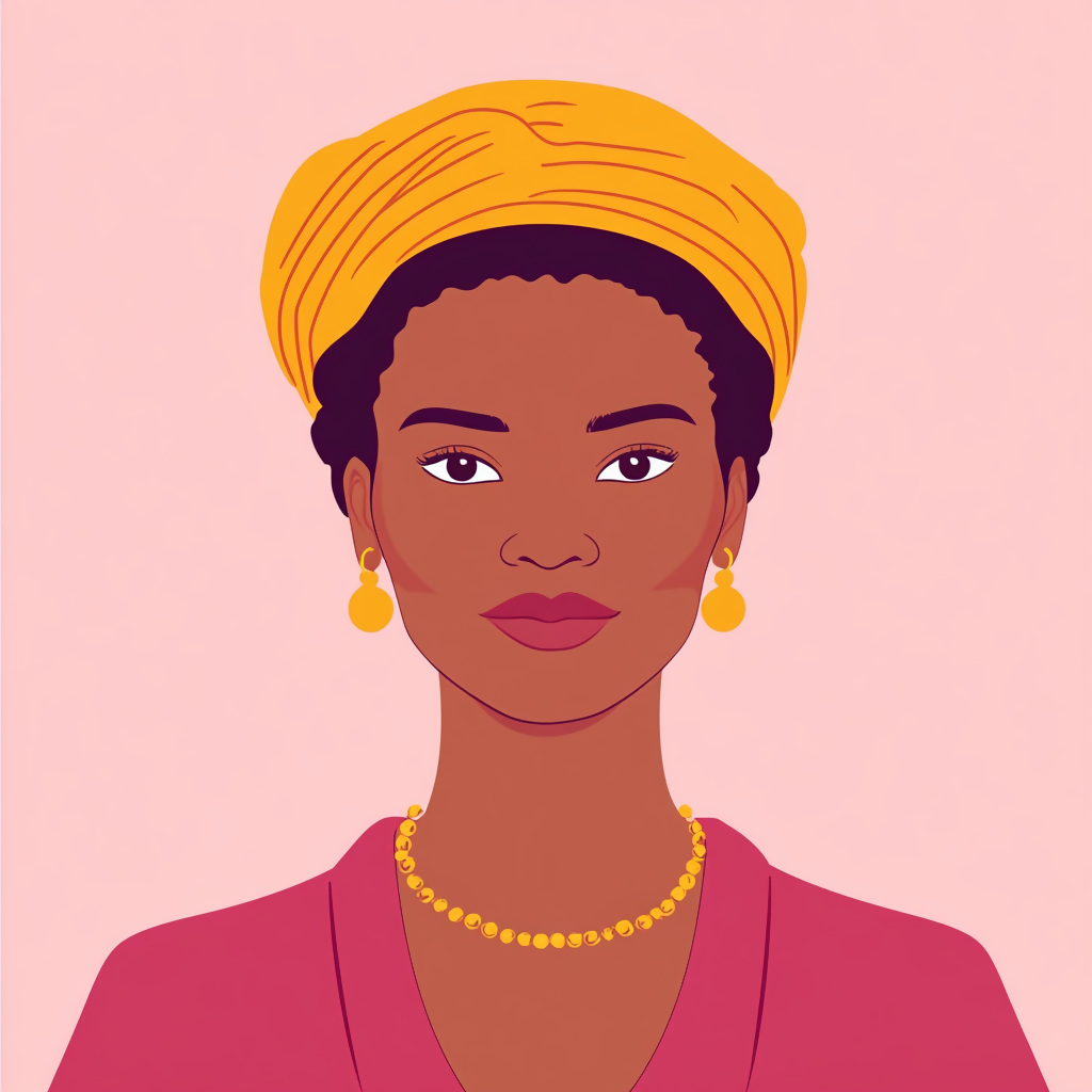 A powerful 2D vector portrait of an African woman, illustrated with clean lines and bold, expressive shapes. Her natural beauty is highlighted through traditional features, rich skin tones, and cultural elements like headwraps or jewelry. The minimalist style captures strength, grace, and heritage in a modern, digital form