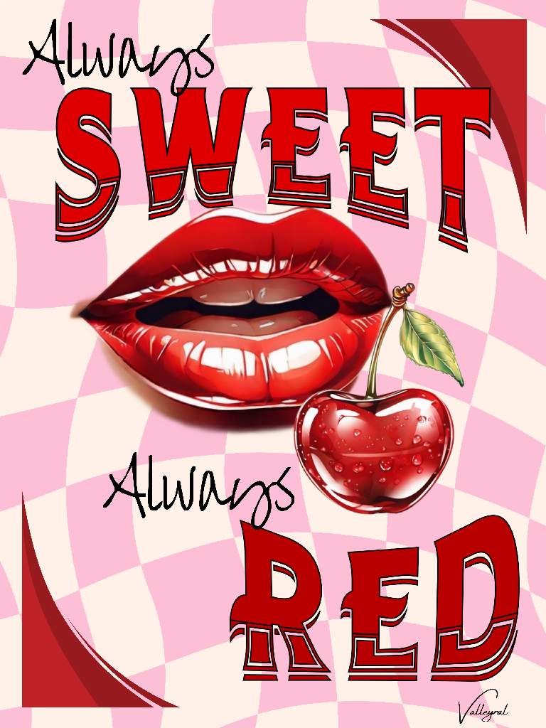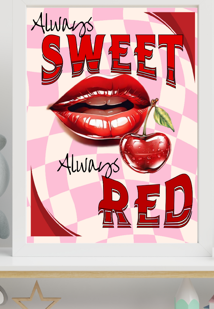 Be bold - go RED! Make a statement about yourself with this striking poster! Ideal funky wall décor and room decoration for a young girl, at home or at the dorm. Print it big or small, it remains a striking image you can put anywhere.