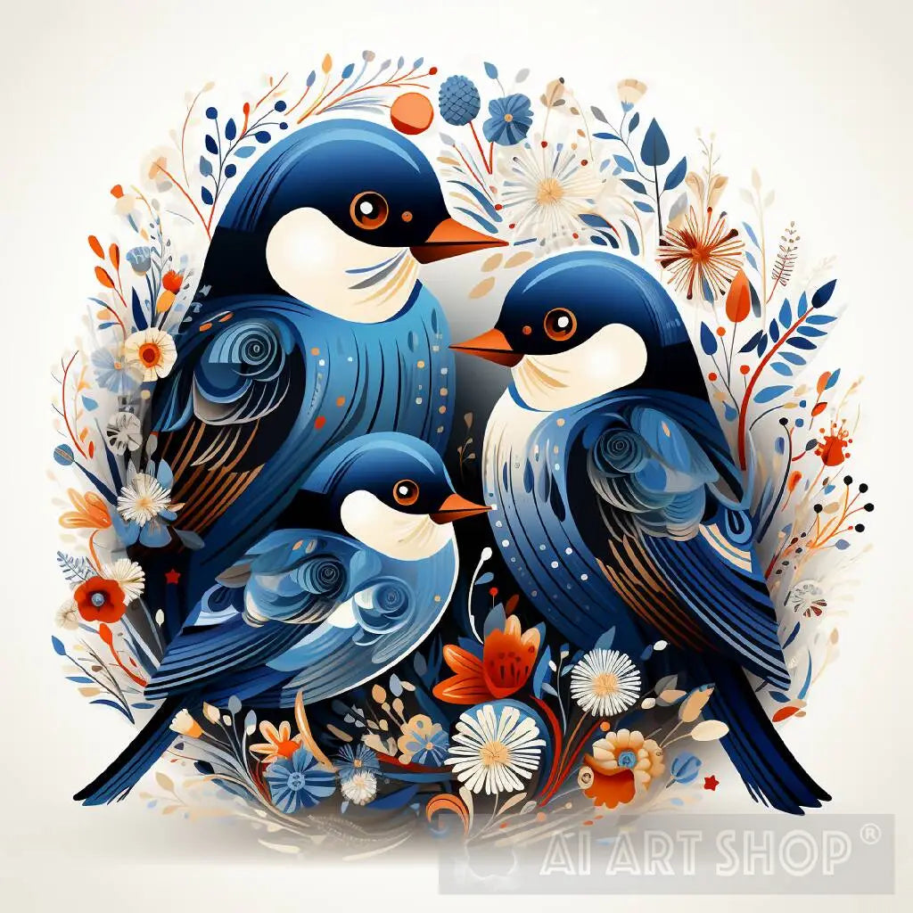 This abstract painting features a simplified penguin design, capturing the essence of this beloved creature through bold and vibrant colors