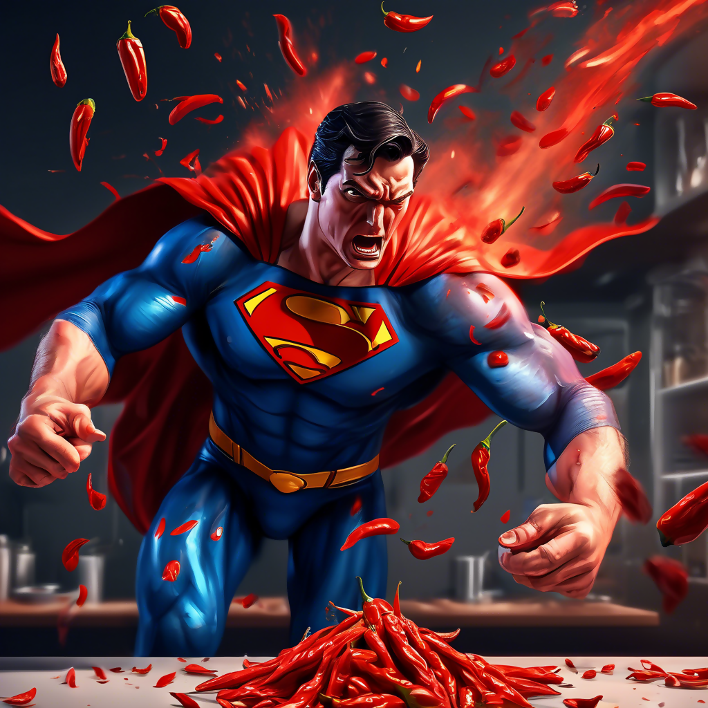 Angry superman after eating red chillies