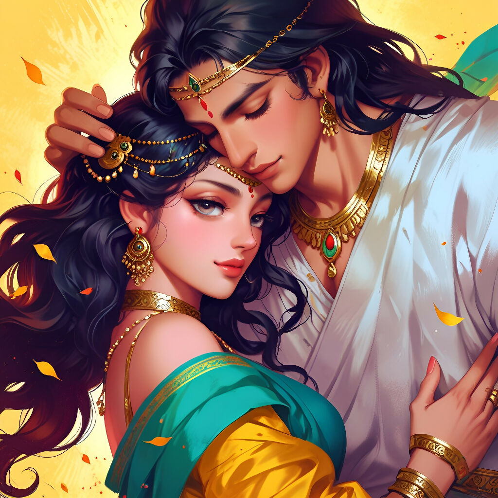A man and woman with long hair are depicted, adorned with gold jewelry. They both showcase fashionable clothing and appear to have a cartoonish style, reminiscent of anime or fictional characters. The image emphasizes their human features and fashion accessories.