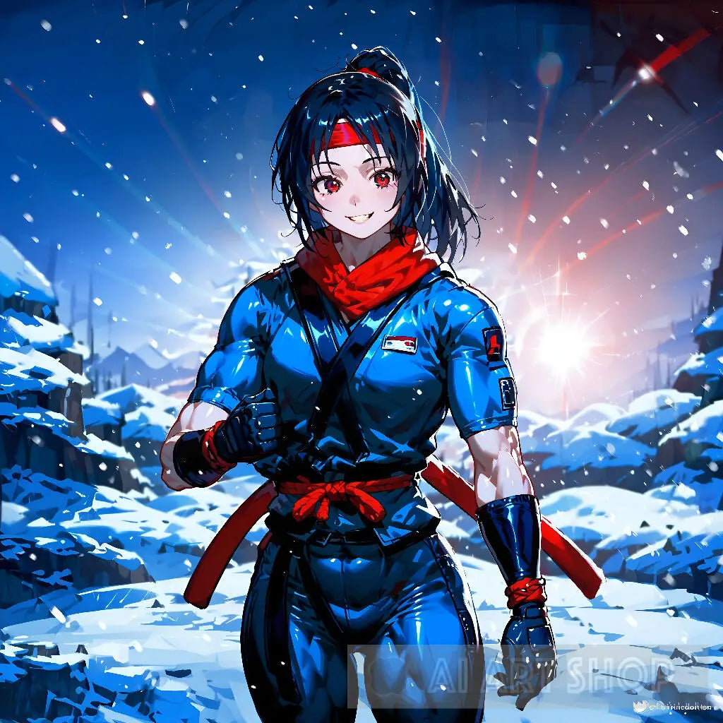 Anime - Massively muscled young ninja girl in the snowy mountains