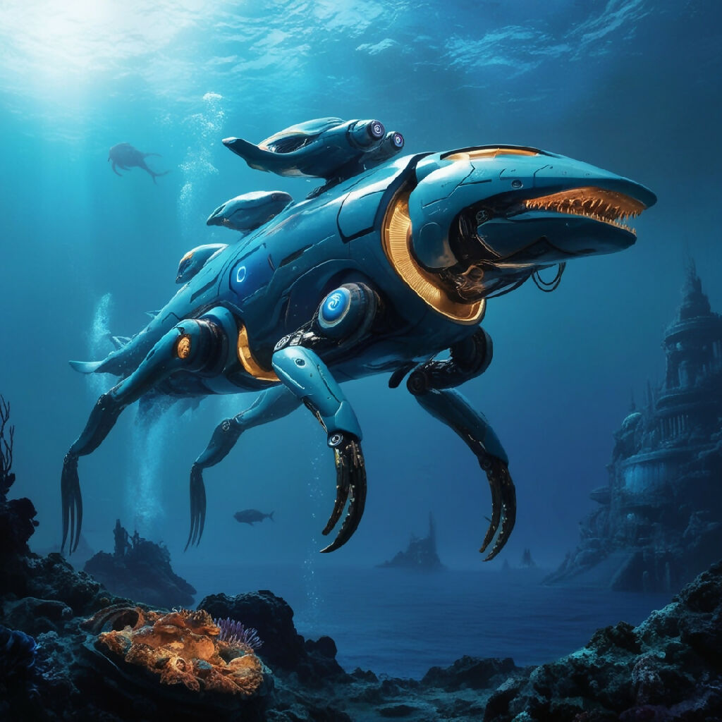 In a future world dominated by vast oceans, a remarkable AI-driven aquatic creature, designed for exploration and communication, emerges. Engineered with advanced sensory abilities and adaptive intelligence, this biomechanical marvel delves into the depths, encountering enigmatic marine life forms, ancient underwater civilizations, and uncovering secrets that challenge humanity's understanding of oceanic existence and its place in a submerged world.