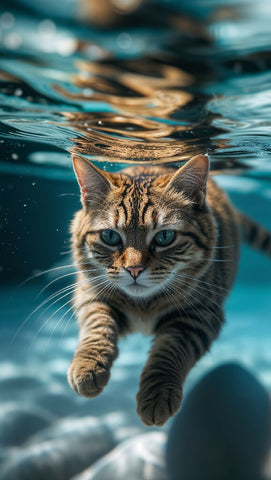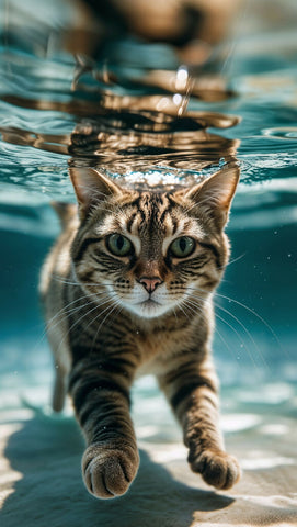 This artwork is perfect for pet lovers, feline enthusiasts, and those who appreciate creative, dreamlike visuals. Whether displayed in a home, office, or as part of an art collection, Aquatic Whiskers brings a sense of joy, adventure, and unexpected charm to any space.