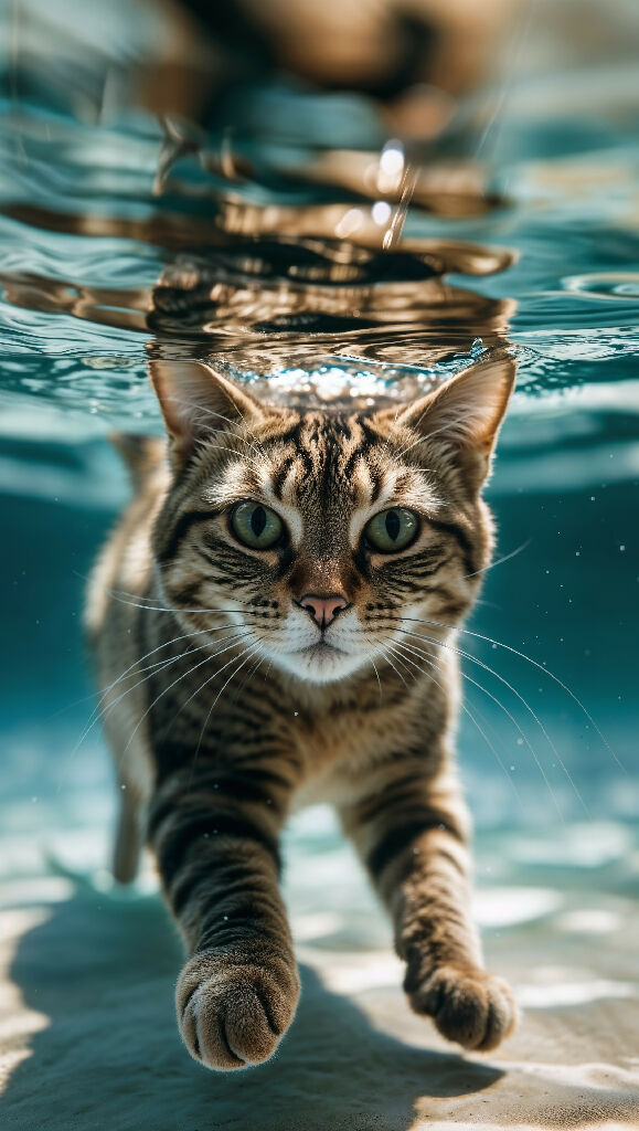 Aquatic Whiskers: Cute Cat Swimming Underwater