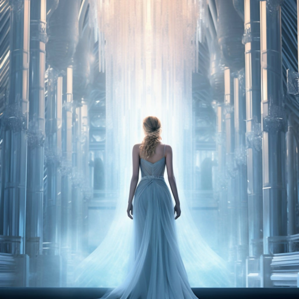 This AI-generated fantasy scene captures elegance, solitude, and icy mystery.